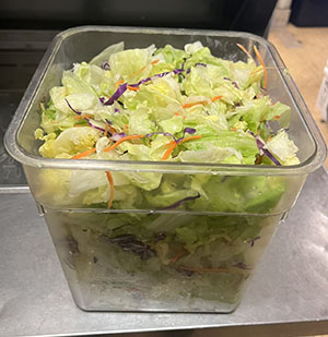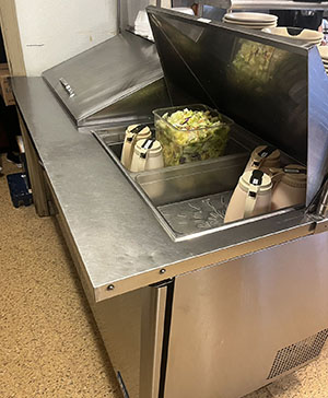 清理沙拉盆,剩余沙拉加冷水(备一罐给后面客人)